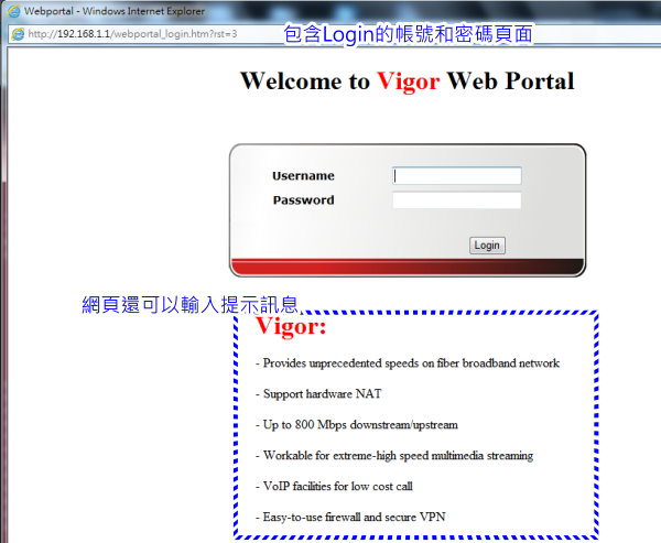 Vigor 2920系列的Login Customization
