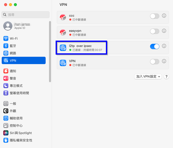 macOS裝置連線L2TP over IPSec