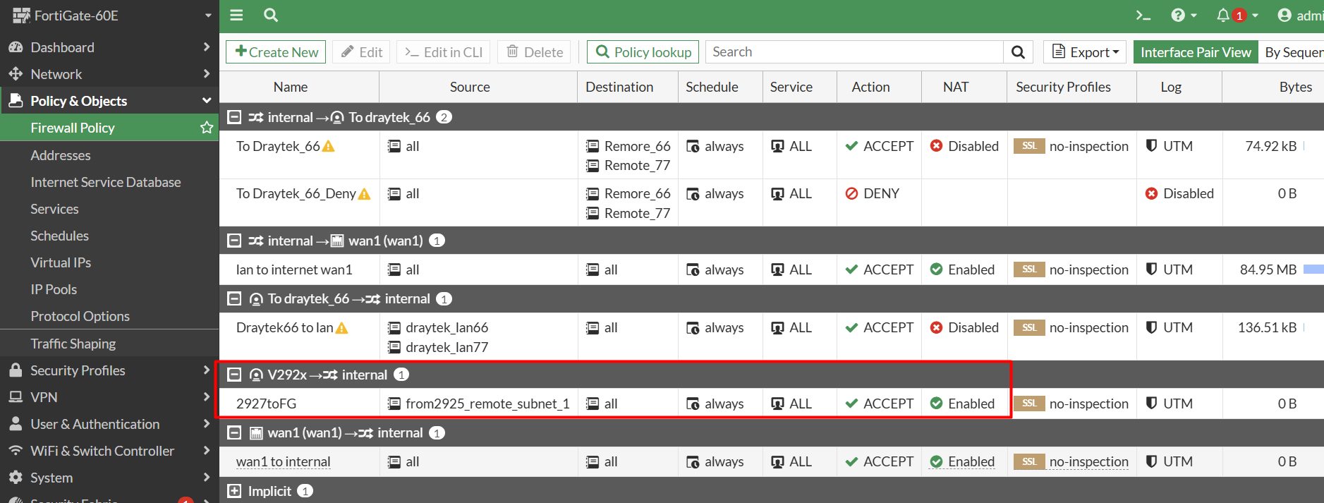 最少要設定一條 Firewall Policy for VPN Site to Site