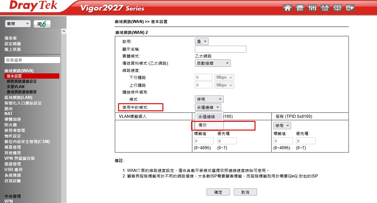 Wan2 當 Wan1 的備援