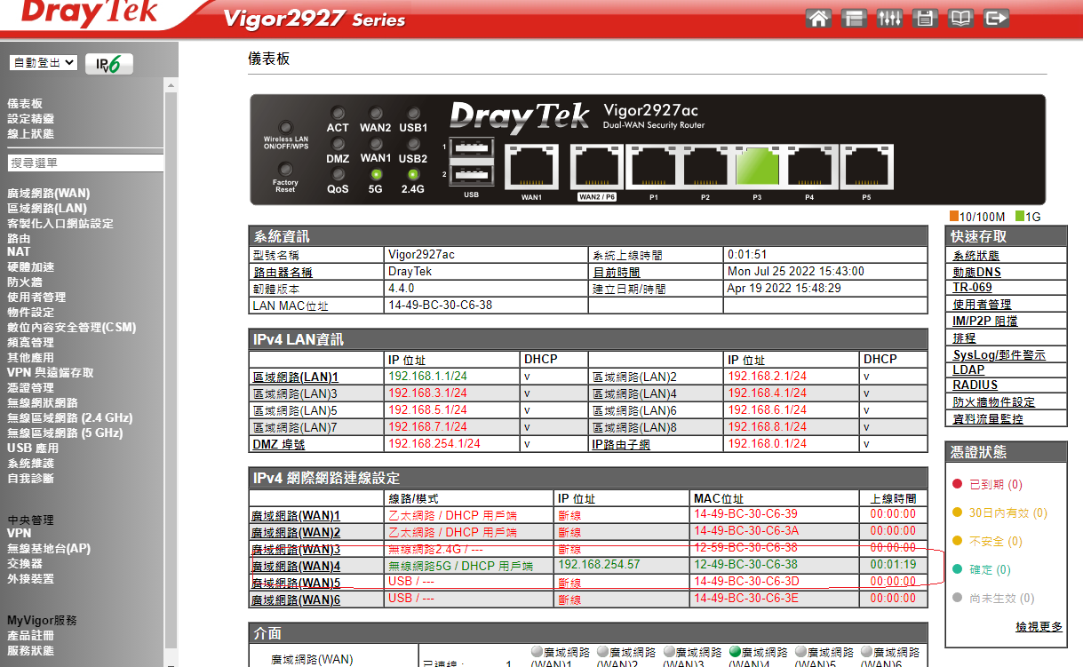 上一篇文章: Vigor2927ac 把上一層的 Wifi 當 WAN WISP
