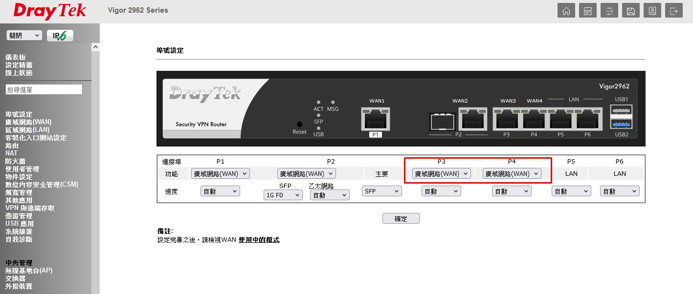Vigor2962 v4.4.3.1 從 2 WAN 變成支援到 4 WAN