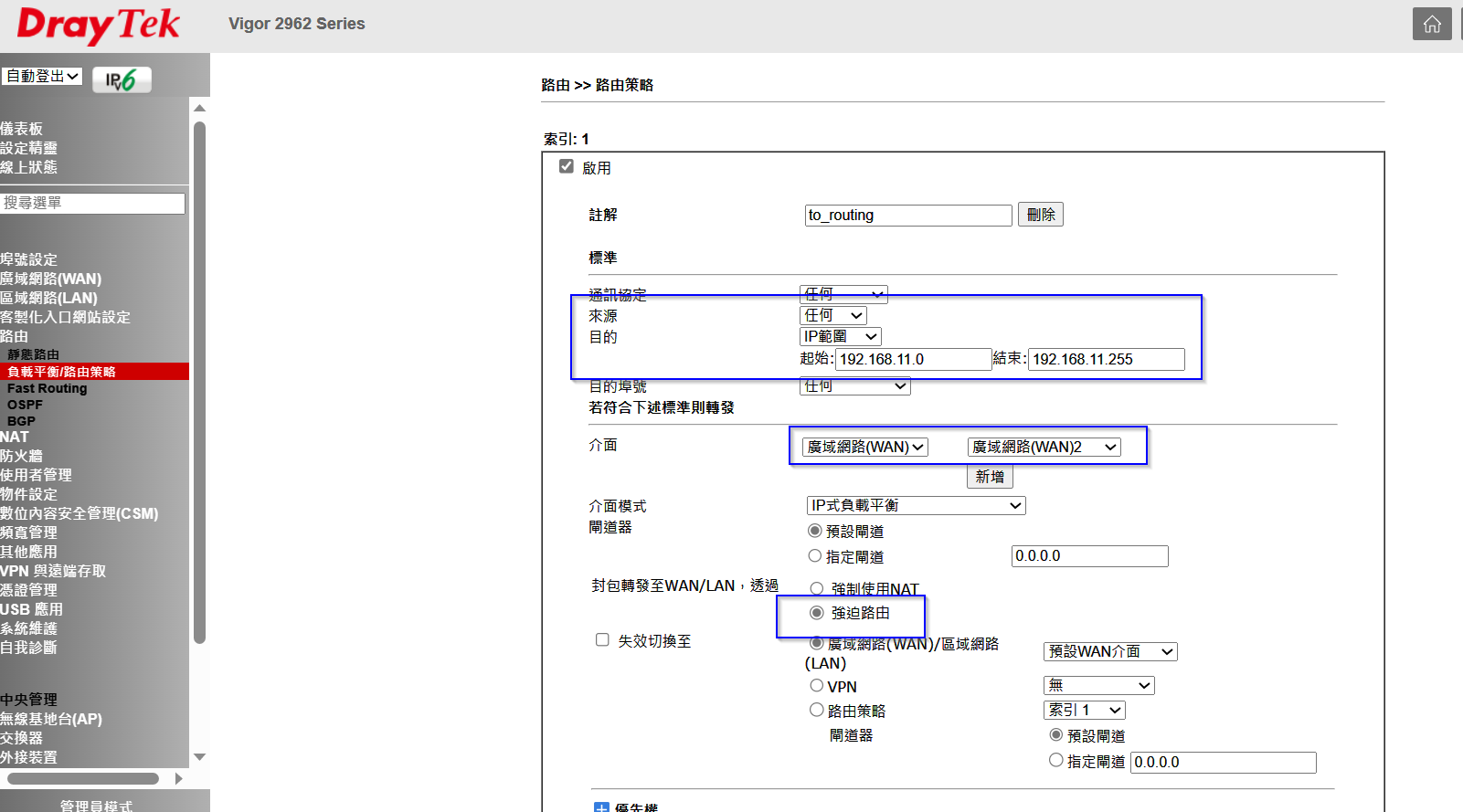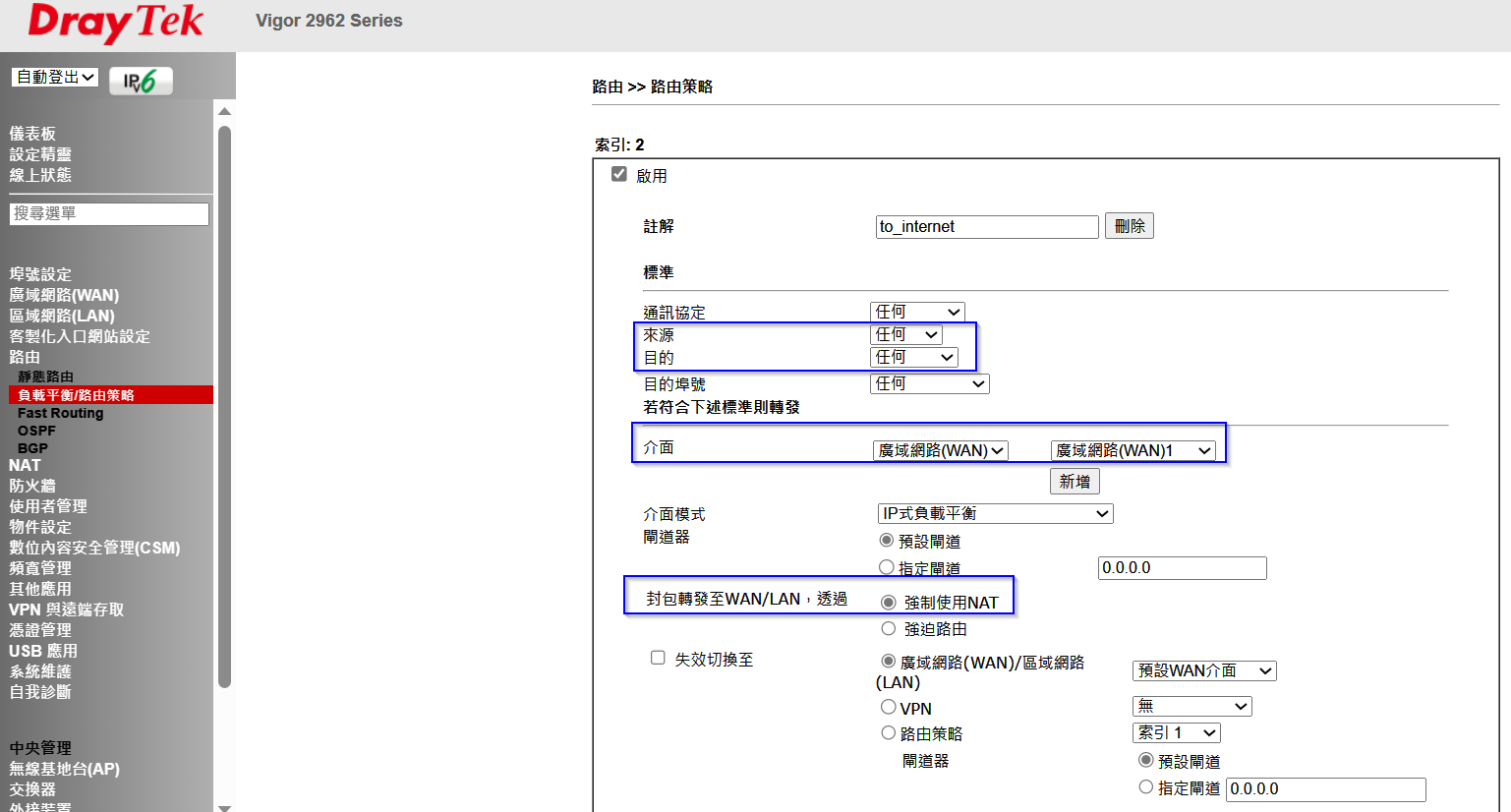 規定往 WAN 2 的是跑路由模式