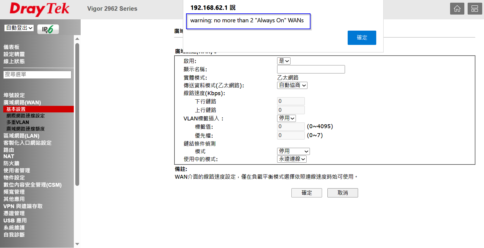 Vigor2962的WAN3可以當備援模式