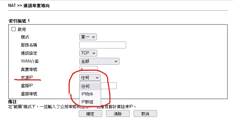 VigorRoute NAT 設定直接限制來源IP存取,非防火牆過濾器Firewall_Filter