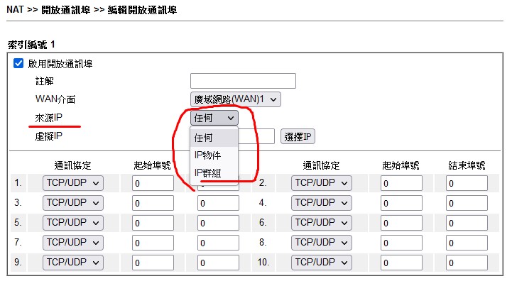 就可以限制指定的IP才能進到對應的伺服器IP指定的服務PORT