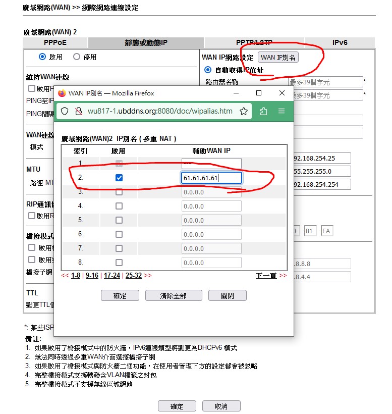 先設定好 WAN IP別名
