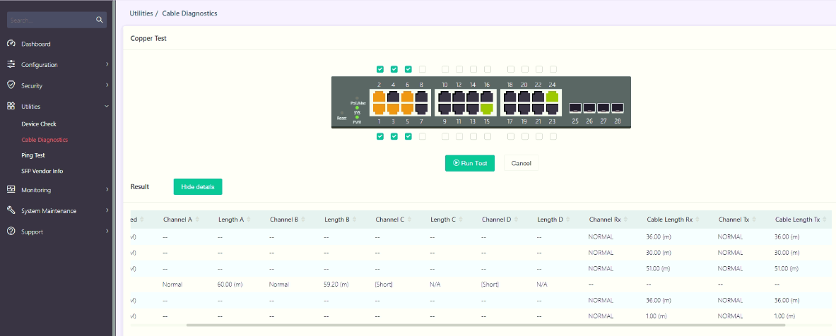 VigorSwitch Port 診斷工具,線路查修,偵測網路線多長,長度