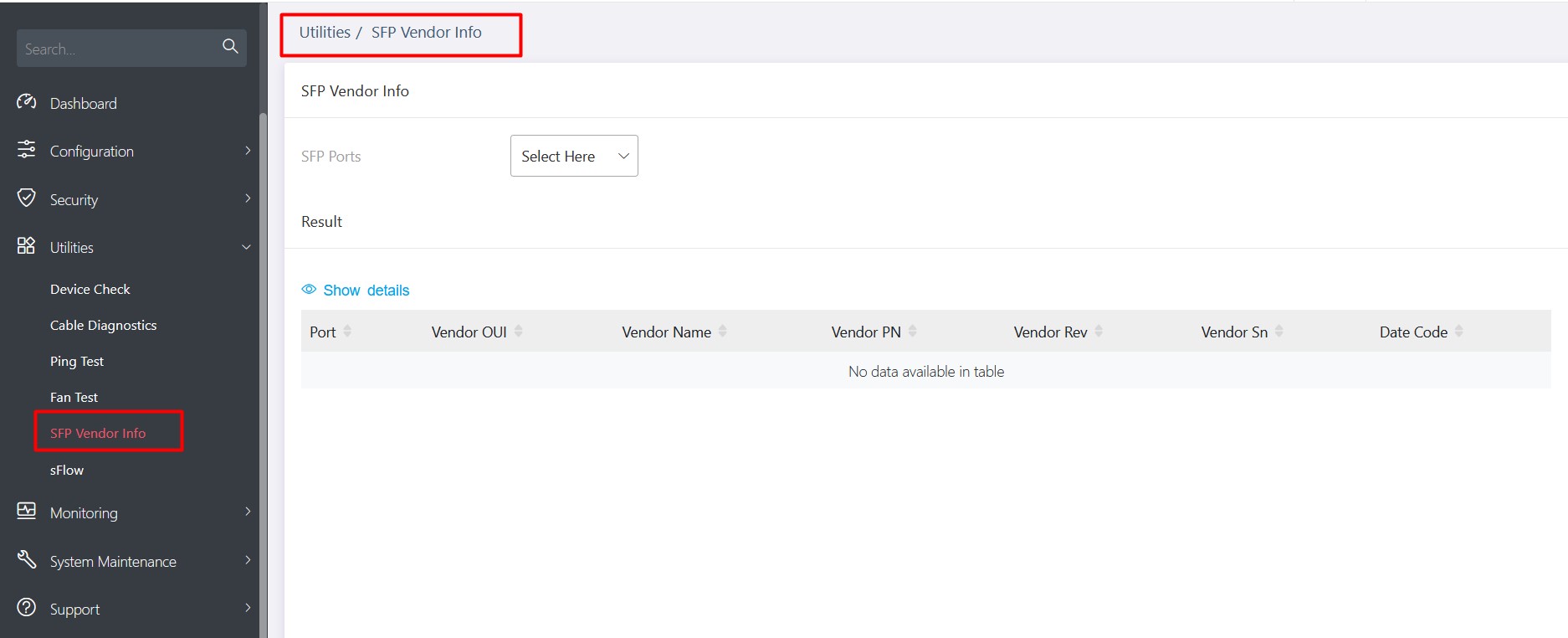 Utilities / SFP Vendor Info