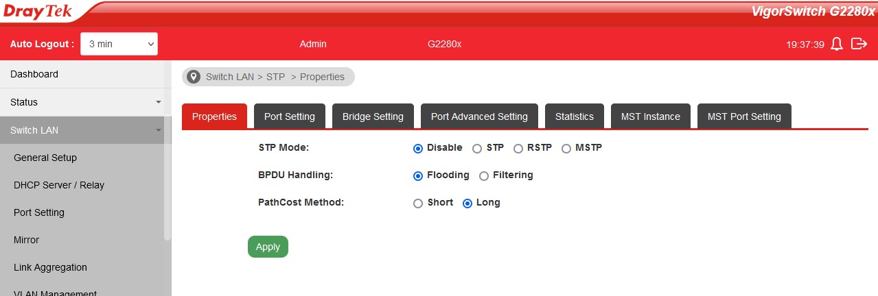 VigorSwitch STP Mode: STP RSTP MSTP