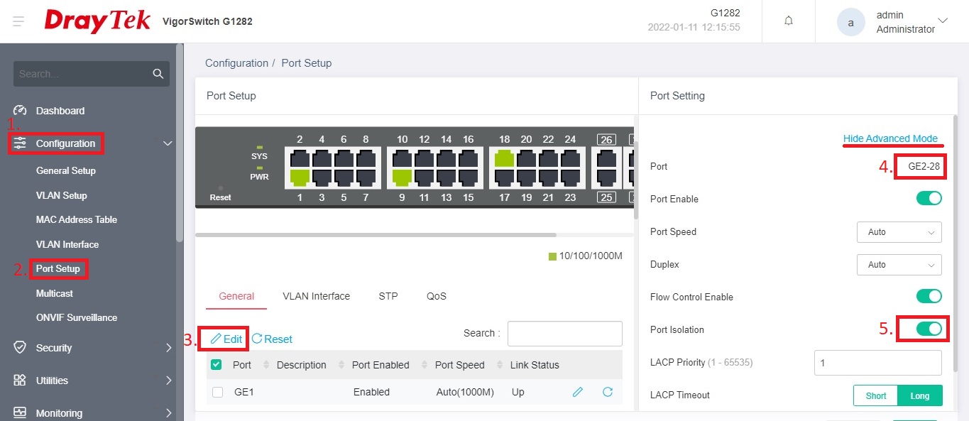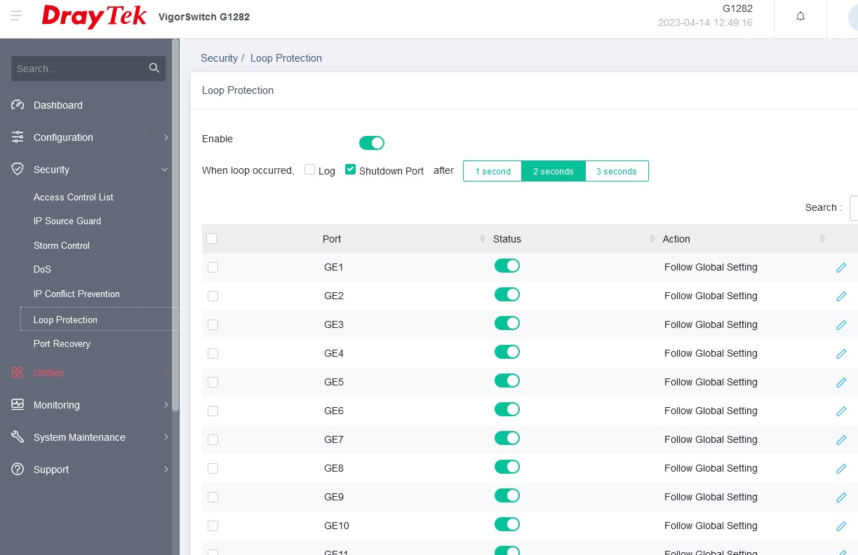 VigorSwitchG1282 port isolation VLAN Protected Port