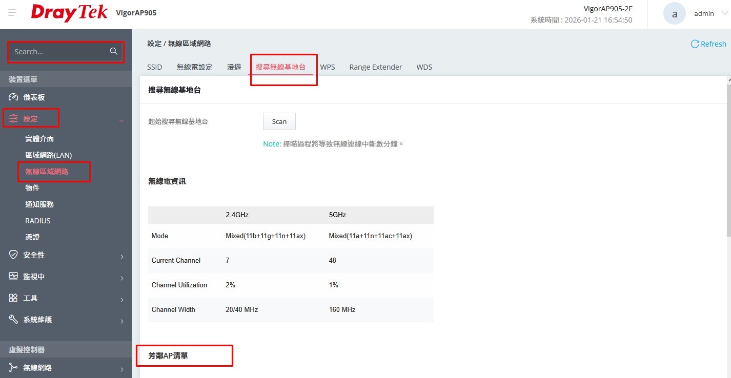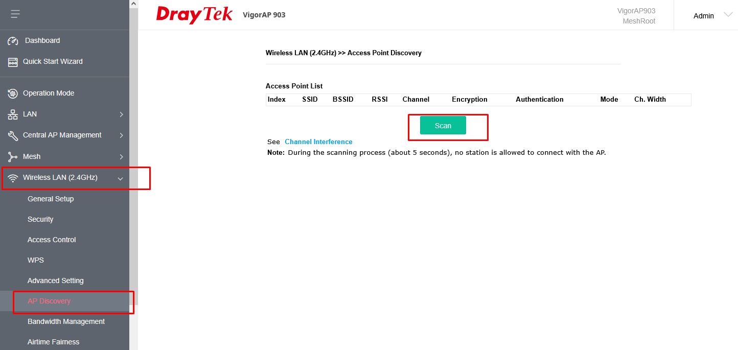Wireless LAN (2.4GHz) >> Access Point Discovery